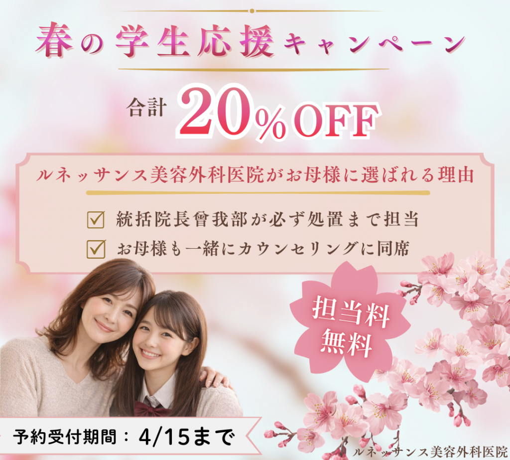 4/15(水)までにご連絡いただければ、神戸院4月の最終診療日4/27(月)までの処置予約をキャンペーン対象といたします。